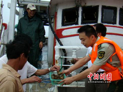 中新網(wǎng)惠安6月15日電 (林永傳 郭斌 陳群峰)“嗯……好吃,跟臺(tái)灣的口味差不多,謝謝你們邊防民警……”15日,福建崇武邊防派出所官兵為來轄區(qū)港口靠岸避風(fēng)雨的19名臺(tái)胞送上了“閩南肉粽”,受到了臺(tái)胞的熱烈歡迎。