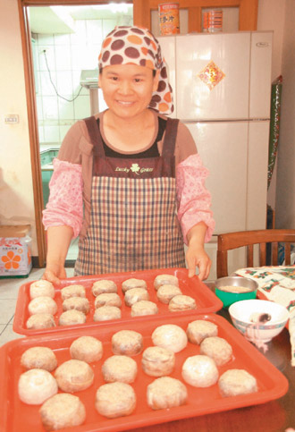 黎海霞的丈夫在學(xué)校當(dāng)校工,白天由她負(fù)責(zé)照顧一家老小,天不亮忙做餅,下午擺攤,還要接送七歲與五歲女兒上幼兒園;問她嫁來臺灣會不會很辛苦?她回答說:“當(dāng)然會!痹龠x擇一次還會嫁來臺灣嗎?“當(dāng)然不會”,說完一陣爽朗的笑聲。
