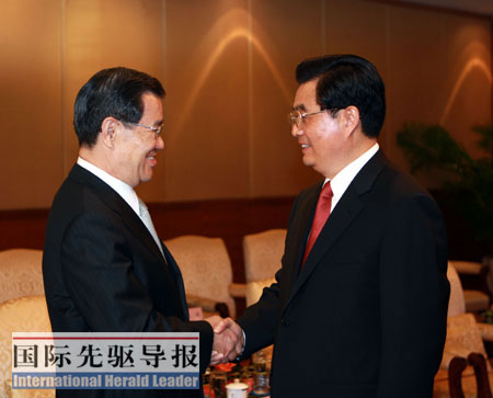 胡錦濤在會見時表示,“早在30年前,我們就主張開展兩岸經濟交流合作!彼麖娬{,當前,兩岸經濟交流合作面臨著重要的歷史性機遇,需要雙方共同努力,大力推進。