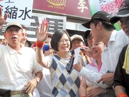 8月30日,蔡英文帶領(lǐng)綠營(yíng)民眾上街游行,表達(dá)對(duì)馬英九當(dāng)局的不滿。