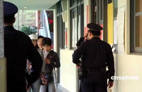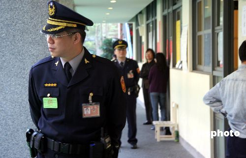 圖:臺(tái)北警員在“立委”選舉投票現(xiàn)場(chǎng)維安