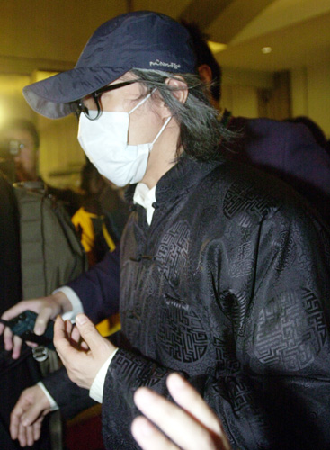 香港藝人周星馳一月二十九日搭機(jī)來臺(tái)宣傳新作,他以神秘裝扮出現(xiàn)。( “中央社”圖;劉得倉攝)