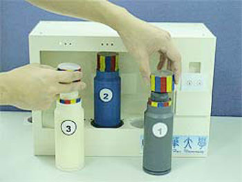 王志湖說(shuō),此裝置就是將一般瓶子利用RFID(無(wú)線射頻)技術(shù),在蓋子內(nèi)內(nèi)建信息,可以監(jiān)測(cè)瓶子是否有被開過(guò)、取用時(shí)間、憑證管理等功能,工作人員若拿不對(duì)的憑證,則無(wú)法拿起瓶子。他表示,這種裝置可應(yīng)用在醫(yī)藥界、化學(xué)界、旅館業(yè)等,這次參展時(shí),其中一位俄羅斯評(píng)審對(duì)此發(fā)明特別感興趣,因莫斯科的高級(jí)飯店,經(jīng)常發(fā)生高價(jià)酒被開瓶,放入異物后偽造簽封封起來(lái),再向店家索討高額賠償金的犯罪案件。