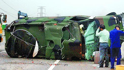資電作戰(zhàn)指揮部表示,這輛車十月二十六日到位于桃園的“中科院”進行年度定期保養(yǎng),昨自返回中部駐地時,行經(jīng)南下彰化路段時,疑因左后輪刺到尖銳物爆胎翻車,所幸駕駛兵及隨車的士官長毫發(fā)未傷。不過,士官長陳俊典見記者采訪時,猛擋記者鏡頭并拿相機反搜證指稱:“這是通訊車恐怕會有外泄問題,希望不要拍攝!”
