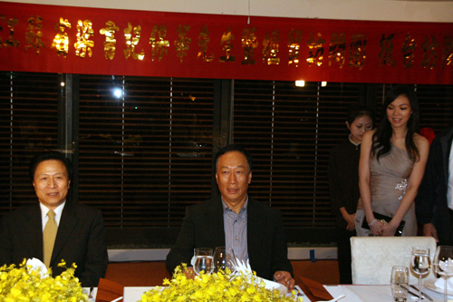 梁保華所帶領(lǐng)的大陸江蘇省經(jīng)貿(mào)考察團(tuán),晚上6時(shí)30分在涵碧樓湖光軒餐廳接受郭臺(tái)銘的晚宴,陪同的臺(tái)灣政商人士包括國民黨副主席林豐正、全臺(tái)工業(yè)總會(huì)理事長陳武雄等人,計(jì)有兩岸代表約50人參加。