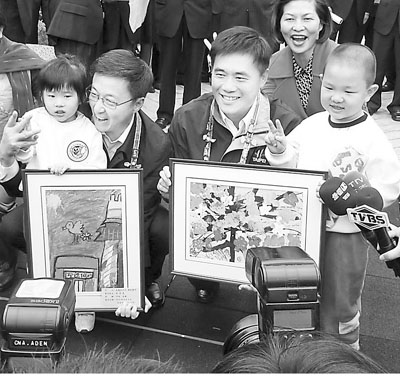 由于沒有安排接駁車,記者打車趕往下一站——北投垃圾焚化處理廠。由于此項參觀也不對外,記者又趕到附近的一家幼兒園等候。在臺北市長郝龍斌的陪同下,韓正與此間的小朋友見面,小朋友為兩位市長唱歌跳舞,又把自己畫的畫送給市長,韓正把帶來的上海世博會吉祥物海寶送給小朋友,又和他們合影留念,小朋友個個樂得手舞足蹈。