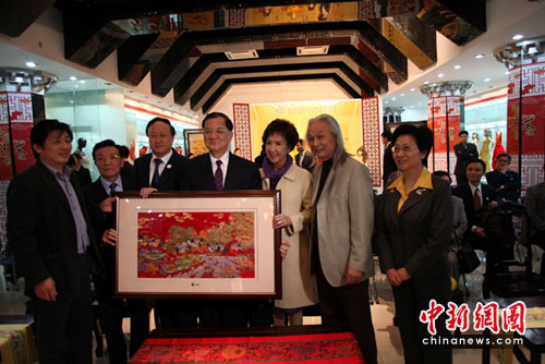 中新網(wǎng)南京4月28日電(申冉)今天下午,來寧出席“2010海峽兩岸企業(yè)家紫金山峰會”的中國國民黨榮譽(yù)主席連戰(zhàn)攜夫人參觀了南京云錦制造所在地——南京云錦研究所,南京市委書記朱善璐全程陪同參觀。