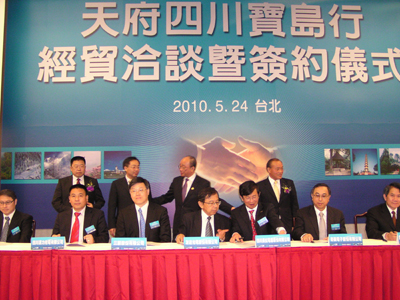 四川省工業(yè)經(jīng)濟聯(lián)合會與工業(yè)總會、臺灣區(qū)電機電子工業(yè)同業(yè)公會等川臺經(jīng)貿(mào)、旅游、農(nóng)業(yè)、文化團體,上午共簽署5份合作協(xié)議。“貿(mào)協(xié)”下午在臺北國際會議中心舉辦川臺采購洽談會,預(yù)計安排上百場1對1洽談。