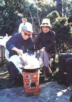 其實(shí),這張照片照的是蔣介石為家人制作他獨(dú)門“雞油炒飯”時(shí)的畫面,在多數(shù)照片與場合中都相當(dāng)嚴(yán)肅的蔣介石,只有在與家人團(tuán)聚,進(jìn)行他最愛的野炊時(shí),才會露出這樣輕松和藹的一面,所以這張“蔣公炒飯照”可說相當(dāng)經(jīng)典,在不同時(shí)刻、地點(diǎn),蔣介石炒飯都被留影,讓人感受這位褒貶不一歷史人物的另一面。