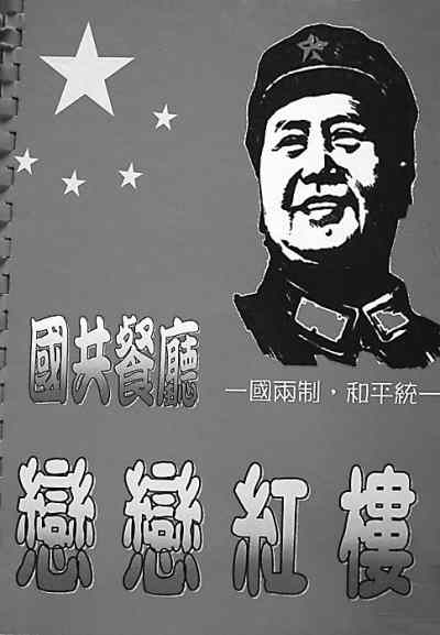 我在金門旅游時,幾位年輕的郵友帶我來到金門老街。這條老街據(jù)說已經(jīng)有幾百年的歷史了,大部分店鋪都保存著原有的風(fēng)貌。這些店鋪主要經(jīng)營當(dāng)?shù)氐耐撂禺a(chǎn),比如金門貢糖、金門高粱酒、金門牛肉干、金門陳皮果,還有金門菜刀等,店鋪也像古代的酒店一樣,旗幡當(dāng)街飄揚,兩旁一盆盆的鮮花清香四溢,酒香花美,街道中央不時能看到百年的榕樹,盤根錯節(jié)。海風(fēng)陣陣,這真是濤聲依舊,又見千年的滄桑,百年的風(fēng)雨,令人心曠神怡,不知今夕何夕。信步走來,我們想找個地方歇歇腳,喝喝咖啡。抬頭一看,前面“國共餐廳”4個大字極為醒目,紅旗飄揚,“走進(jìn)新時代”的歌聲清脆悅耳。我想:此時竟在何方,難道我們現(xiàn)在是在大陸嗎?難道國共雙方的代表曾在這里見過面嗎?我們帶著好奇心走進(jìn)了餐廳,美麗的小姐說著流利的普通話,熱情地歡迎我們,請我們?nèi)胱,為我們沏茶,而且馬上遞給我們一個菜譜。這菜譜一看,全是紅色,著軍裝的毛澤東像赫然在目,還有“一國兩制,和平統(tǒng)一”的口號,還印著五星紅旗。打開菜譜一看,有不少大陸的名菜,也有毛澤東喜歡吃的紅燒肉、臭豆腐,真是令人激動!