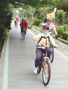 臺(tái)東縣長(zhǎng)黃健庭致詞時(shí)說(shuō),臺(tái)東自行車(chē)道讓臺(tái)東人很自豪。15年前,縣府城鄉(xiāng)發(fā)展處長(zhǎng)許瑞貴在關(guān)山鎮(zhèn)長(zhǎng)任內(nèi),就運(yùn)用環(huán)保部門(mén)空污費(fèi)開(kāi)辟全臺(tái)第一座親水公園及環(huán)鎮(zhèn)自行車(chē)道,接著是池上鄉(xiāng)、鹿野鄉(xiāng)、臺(tái)東市也相繼興建專用自行車(chē)道。