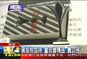 中新網(wǎng)5月14日電 據(jù)臺灣TVBS報(bào)道,蔣家后代蔣友柏設(shè)計(jì)過許多產(chǎn)品,目前正式跨足臺灣玩具市場。蔣友柏花了2年時(shí)間,設(shè)計(jì)了包括毽子、竹蜻蜓等一系列兒童玩具,用PVC材質(zhì)制作,造型非常時(shí)尚,也因?yàn)橛辛耸Y友柏加持,一個(gè)小玩具居然要賣590元新臺幣。
