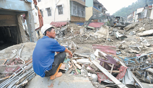 中新網(wǎng)8月24日電 據(jù)臺灣《聯(lián)合報》報道,全力支援救災(zāi)的臺軍八軍團,連日來以直升機載運物資進入交通中斷的桃源鄉(xiāng)和那瑪夏鄉(xiāng),23日進入那瑪夏鄉(xiāng)民族村和民權(quán)村,斷垣殘壁的災(zāi)區(qū)看來宛如戰(zhàn)后世界,一片凄涼。