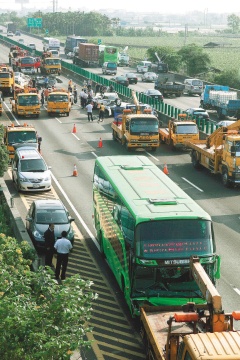 警察擔(dān)心槽車爆炸,前晚十時(shí)起封閉外側(cè)兩車道,僅開放內(nèi)側(cè)車道,導(dǎo)致大塞車,車陣超過十公里,直到昨天中午仍未排除。