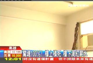 據(jù)臺灣TVBS電視臺報道,高雄縣一名女子這幾天發(fā)現(xiàn)墻角天花板流出暗紅色、有臭味的水。報警后,警方到公寓3樓開門,才發(fā)現(xiàn)在房間里有一具發(fā)黑浮腫的男尸倒臥床上,尸水滲出棉被流到地板再滲進樓下房間,驚悚情景猶如恐怖電影情節(jié)。