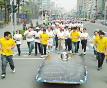 馬拉松賽將于28日上午7時(shí)開跑,吸引全球198位選手參賽,總報(bào)名人數(shù)約2萬人。造勢隊(duì)伍昨天從高雄巨蛋戶外廣場跑至捷運(yùn)凹仔底站,小試身手跑了約1.3公里,并請(qǐng)來高校研發(fā)的太陽能車阿波羅號(hào)擔(dān)任前導(dǎo)車。
