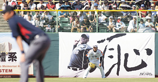白底黑字的“恥”字,在全壘打墻二十三面廣告牌中,顯得格外搶眼,這塊廣告牌掛在左邊(左外野)數(shù)來第二塊位置,剛好正對(duì)熊隊(duì)休息室,也隱含意義。