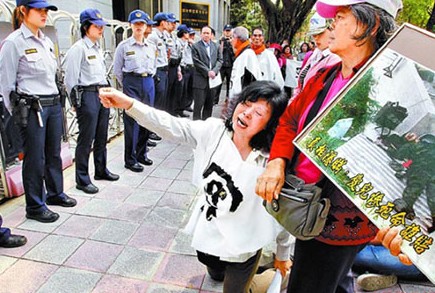 中新網(wǎng)3月25日電 據(jù)臺(tái)灣媒體報(bào)道,臺(tái)空軍一中士蔡學(xué)良于前年五月九日在靶場(chǎng)射擊時(shí)遭槍傷后不治身亡,被判定是自殺,蔡母尤瑞敏率親屬到空軍司令部前拉白布條抗議,痛批空軍“草菅人命、黑箱作業(yè)、毀滅證據(jù)”,蔡母倒地痛哭:“司令,我給你跪,拜托你給我們一個(gè)真相,不要再敷衍了!”隨后并向“監(jiān)委”趙昌平陳情,趙允諾調(diào)查,近期內(nèi)將約談相關(guān)人員。