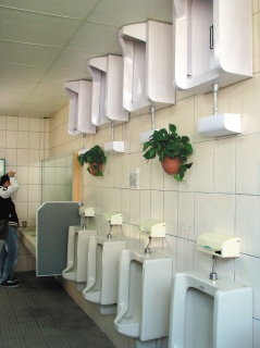 “咦! 小便斗、馬桶怎么倒置在墻上、天花板?”走進臺灣醒吾技術(shù)學院的廁所,如果抬頭看,恐會一時反應不過來,以為眼花了,天花板又是地板,地板是天花板,人仿佛變成倒立站在天花板上廁所了。