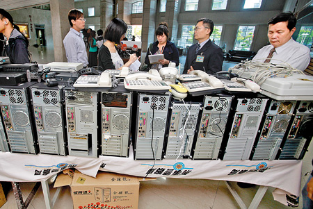 臺灣“刑事局”偵一隊(duì)、臺北縣市刑偵大隊(duì)昨天兵分十五路查緝,直搗集團(tuán)核心機(jī)房,查扣四十九臺電腦、電話機(jī)九十具、手機(jī)六十七支及現(xiàn)金十一萬,逮捕主嫌陳光著等32人。