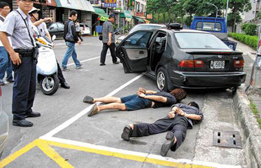 中新網(wǎng)5月26日電 據(jù)臺(tái)灣《中國(guó)時(shí)報(bào)》報(bào)道,高雄市警方在街頭攔車(chē)緝毒,兩名嫌犯拒檢,還開(kāi)車(chē)沖撞警員,警方開(kāi)了六槍?zhuān)戳舷雰擅矩満涟l(fā)無(wú)傷,卻有兩名路人被流彈碎片波及,所幸傷勢(shì)無(wú)大礙。