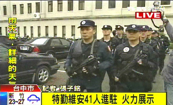 中新網(wǎng)6月2日電 據(jù)臺(tái)灣TVBS電視臺(tái)報(bào)道,臺(tái)中市接連發(fā)生重大刑案,維安特勤小組今日下午再次進(jìn)駐臺(tái)中市,每名特勤隊(duì)員都配備了精良的武器裝備。不過(guò)警方表示,這次維安特勤人員進(jìn)駐,穩(wěn)定力量將多過(guò)于實(shí)質(zhì)破案的績(jī)效。