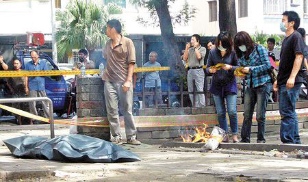 中新網6月10日電 據臺灣《中國時報》報道,臺灣高雄縣市交界的崗山仔地區(qū)9日中午連續(xù)傳出槍響,水果攤商翁文定為攤位糾紛,持槍在市場朝同行黃春生近距離開槍,隨后騎車往崗山仔公園,打手機給女性友人告知“我要自殺了”,就朝太陽穴開槍當場斃命,黃姓男子則身中四槍被送往醫(yī)院急救,性命垂危。