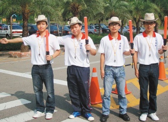 來自福建省漳州職業(yè)技術(shù)學(xué)院的林少瑋、王智鵬、陳志榮、陳燦鑫,來臺讀大學(xué),最近加入“交通服務(wù)隊”社團,經(jīng)過1周訓(xùn)練,實際站上路口。
