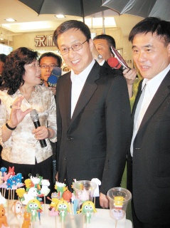 可能是晚宴都還沒消化,韓正來到夜市并未品嘗任何小吃,只有喝了一小杯茶葉攤商的奉茶,夜市內(nèi)一家藝品店老板戴忠泉送給韓正一只石刻作品,象征“時時好運、節(jié)節(jié)高升”,郝龍斌在旁強調(diào)“臺北市民就是這么熱情”,韓正笑著回應說:“全都感受到了!”
