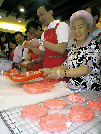中新網(wǎng)6月22日電 據(jù)“中央社”報道,國民黨新北市長參選人朱立倫22日到汐止市百年紅龜粿店,與75歲的劉余銀奶奶一起做紅龜粿,朱立倫毫不生疏、架勢十足,讓老奶奶猛稱贊,并給了他90分的高分。