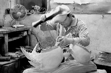 蔡錦旺告訴記者,他曾經(jīng)去過大陸多次,發(fā)現(xiàn)大陸人才濟濟,而且用工相對便宜。現(xiàn)在,三義有很大一部分的木雕是從大陸進口,需要什么樣的作品一張照片傳真過去,當?shù)氐膸煾稻湍茏龀霭司懦。所以拼產(chǎn)量,三義沒有優(yōu)勢。他希望,能夠通過不間斷的培養(yǎng)、提高,在原創(chuàng)性、藝術(shù)性上下工夫,讓三義出現(xiàn)更多朱銘這樣的大家,兩岸在設計和批量生產(chǎn)上進行合作,才是三義木雕以后發(fā)展的方向。(記者 陳夢婕)