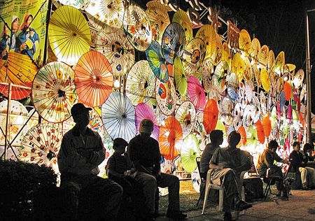 高雄美濃的制傘技藝最初來自大陸廣東,為紀念紙傘由廣東梅縣傳進,美濃的店名多以“廣”字為頭,例如廣進勝、廣華興和廣德興等。家傳三代廣華興老板曾啟華說,“50年代前,油紙傘與煙葉為美濃重要收入來源,每年產(chǎn)銷量逾兩萬把,產(chǎn)值超過4000萬元。”