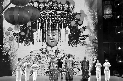 把媽祖祭祀典儀搬上舞臺(tái),是晚會(huì)的一大亮點(diǎn)。三通鼓聲響起,司儀生、儀仗提著紅燈籠出場(chǎng),隨同主祭循古禮上香行三獻(xiàn)之禮,虔誠拜祭媽祖,祈求世界和平。