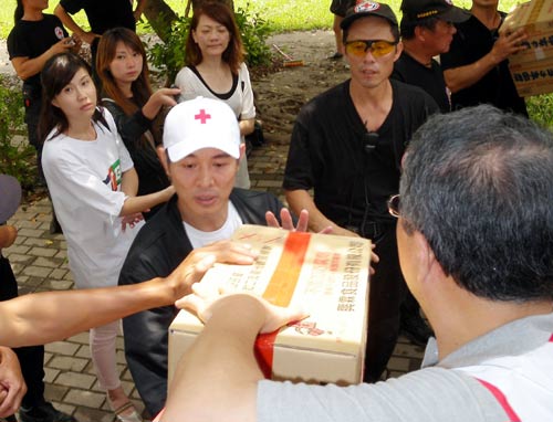 據(jù)“中央社”報道,李連杰上午與紅十字會人員,一同到位于高雄縣旗山鎮(zhèn)旗山中學(xué)的臺軍前進(jìn)指揮所,響應(yīng)“88水災(zāi)”賑災(zāi)。中午在旗山中學(xué)用完餐后,李連杰一行人下午將把準(zhǔn)備好的物資,送進(jìn)高雄縣六龜鄉(xiāng)村落。