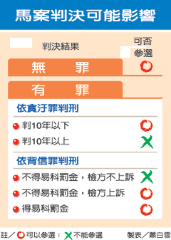 就前述第二點而言,若法官判馬英九背信或侵占罪名成立,等同馬案的貪污部分判無罪,檢察官即有權(quán)就貪污罪部分上訴;而背信、侵占屬二審定讞罪名,馬若被判不能易科罰金的六個月以上徒刑,檢方卻不上訴,馬將因“遭判刑確定且未執(zhí)行完畢”而喪失參選資格。