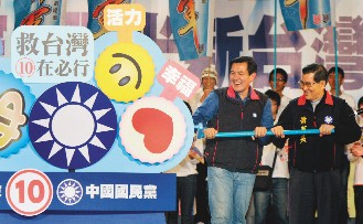 “大選”參選人馬英九致詞時(shí)訴求拼經(jīng)濟(jì)與政黨輪替,呼吁選民踴躍投票讓藍(lán)營(yíng)“立法院”席次過(guò)半。