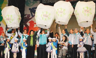 謝長(zhǎng)廷總部動(dòng)員一千個(gè)高雄長(zhǎng)昌會(huì)及33個(gè)后援會(huì),晚會(huì)場(chǎng)地涌入5萬(wàn)人潮,現(xiàn)場(chǎng)并升祈福天燈。民進(jìn)黨五位“立委”候選人在“母雞”謝長(zhǎng)廷帶領(lǐng)下同臺(tái)拉抬選情,高雄市長(zhǎng)陳菊也到場(chǎng)助陣。