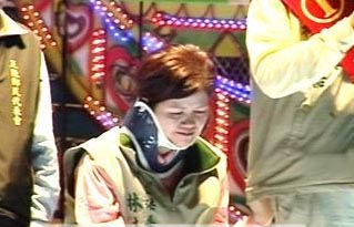 "立委"選戰(zhàn)祭悲情牌 家人負(fù)傷患病站臺下跪(圖)