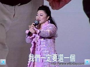 除了白冰冰外,閩南語歌壇“大姐大”陳盈潔也現(xiàn)身馬英九的場子。陳盈潔說:“這是我一生中最關(guān)懷的,幾號?2號!選誰?馬英九!”