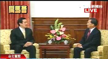 在陳水扁邀請(qǐng)下,馬英九今天上午10點(diǎn)半在臺(tái)北賓館會(huì)面,雙方展開(kāi)3對(duì)3的會(huì)談。