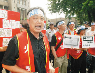陳水扁洗錢風(fēng)暴延燒,綠營(yíng)昨天上演“兒子嗆老子”情景。據(jù)臺(tái)媒報(bào)道,臺(tái)灣“人民火大聯(lián)盟”昨天到民進(jìn)黨抗議,要求民進(jìn)黨主席蔡英文追討扁產(chǎn)贖罪,而帶頭抗議的王醒之正是民進(jìn)黨秘書長(zhǎng)王拓的兒子。對(duì)此,王拓昨晚不愿多回應(yīng),僅尷尬表示“明天再說(shuō)吧”。