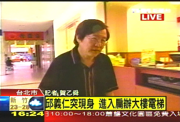 據(jù)臺灣媒體報道,下午16時左右,在扁辦外,邱義仁突然現(xiàn)身。穿著輕松的邱義仁,一個人徒步前來,當(dāng)發(fā)現(xiàn)媒體拍攝,為躲避媒體先是繞至附近,后來又繞回扁辦,進(jìn)入扁辦大樓電梯。