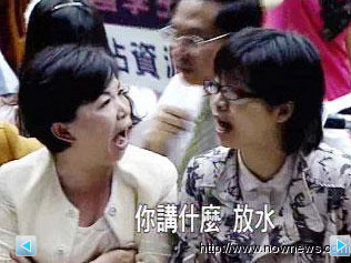報道說,會議主席宣布休息協(xié)商,卻反而制造了藍(lán)綠雙方口水大戰(zhàn)的絕佳舞臺。占人數(shù)優(yōu)勢的藍(lán)營決定按原定議程審理教育部門預(yù)算,沖突就這么發(fā)生。兩個星期前是打巴掌,這回拉扯近乎打群架,“立法院”儼然成為女人的戰(zhàn)場。