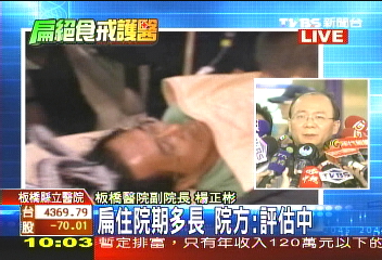 陳水扁生命現(xiàn)象漸趨穩(wěn)定,仍得住院觀察,究竟會(huì)住多久,醫(yī)院話說的很保守,強(qiáng)調(diào)無灌食計(jì)劃。圖片來源:臺(tái)灣TVBS