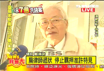 陳水扁委任律師鄭勝助來到臺灣特偵組遞申請狀,希望特偵組能依循嘉義縣長陳明文模式,讓陳水扁能夠特見他的家人。圖片來源:臺灣TVBS