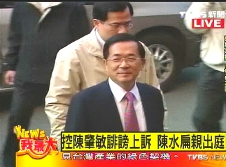 中新網(wǎng)12月17日電 陳水扁控告臺當局“國防部長”陳肇敏加重誹謗案一審敗訴后提出上訴。臺灣“高院”今天下午15點30分左右開庭,陳水扁無保釋放后首次親自出庭。