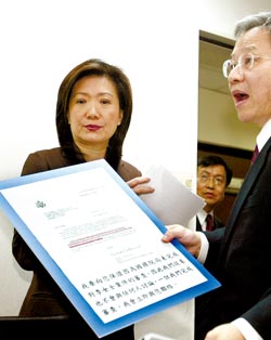 國民黨“立委”李慶安(左)25日發(fā)聲明,即日起暫停行使“立委”職權(quán)及停止領(lǐng)取“立委”薪資。(來源:臺灣《中國時(shí)報(bào)》)