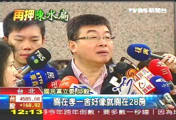 中新網(wǎng)12月30日電 據(jù)臺灣TVBS報道,陳水扁二度遭收押,國民黨“立委”邱毅說陳水扁遭收押的孝一舍28房,跟他上次被關的房舍是同一間,兩人意外成了前后任室友,邱毅諷刺地說這就是現(xiàn)世報。