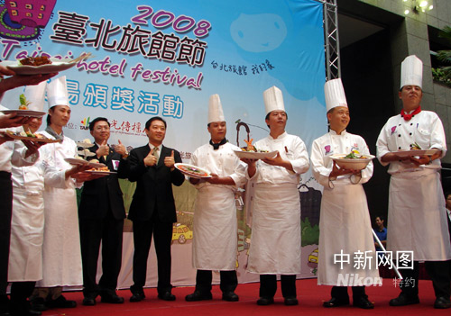 中新社臺(tái)北九月九日電(記者曾福志 陳立宇)臺(tái)北市觀光傳播局九日上午在臺(tái)北市府大樓一樓中庭舉行“2008臺(tái)北旅館節(jié)”頒獎(jiǎng)典禮,通過(guò)表彰一批優(yōu)質(zhì)旅館、“雙語(yǔ)”評(píng)鑒優(yōu)良旅館、優(yōu)良觀光產(chǎn)業(yè)團(tuán)體及優(yōu)良從業(yè)人員為為期一個(gè)月的“2008臺(tái)北旅館節(jié)”造勢(shì)。典禮上,還推出臺(tái)北十道“旅館招牌菜”,并首次頒發(fā)臺(tái)北“觀光計(jì)程車”標(biāo)章。