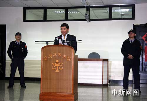 一月七日中午,臺(tái)灣高等法院駁回陳水扁對(duì)二度遭到羈押的抗告,高院認(rèn)為陳水扁委任律師所提抗告沒有理由,因此予以駁回。全案就羈押部分不得再提抗告。圖為臺(tái)灣高等法院發(fā)言人溫耀源在記者會(huì)上宣布裁定結(jié)果并解釋裁定書。 (圖文/中新社記者 陳立宇)